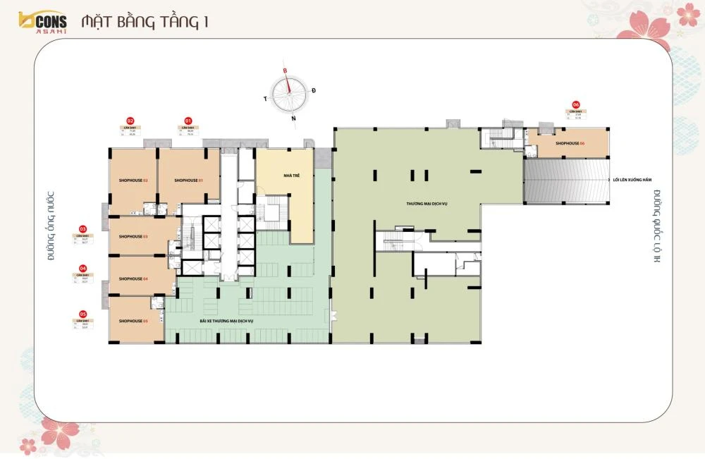 | Tầng 1 | Shophouse + Thương mại dịch vụ + Nhà trẻ |