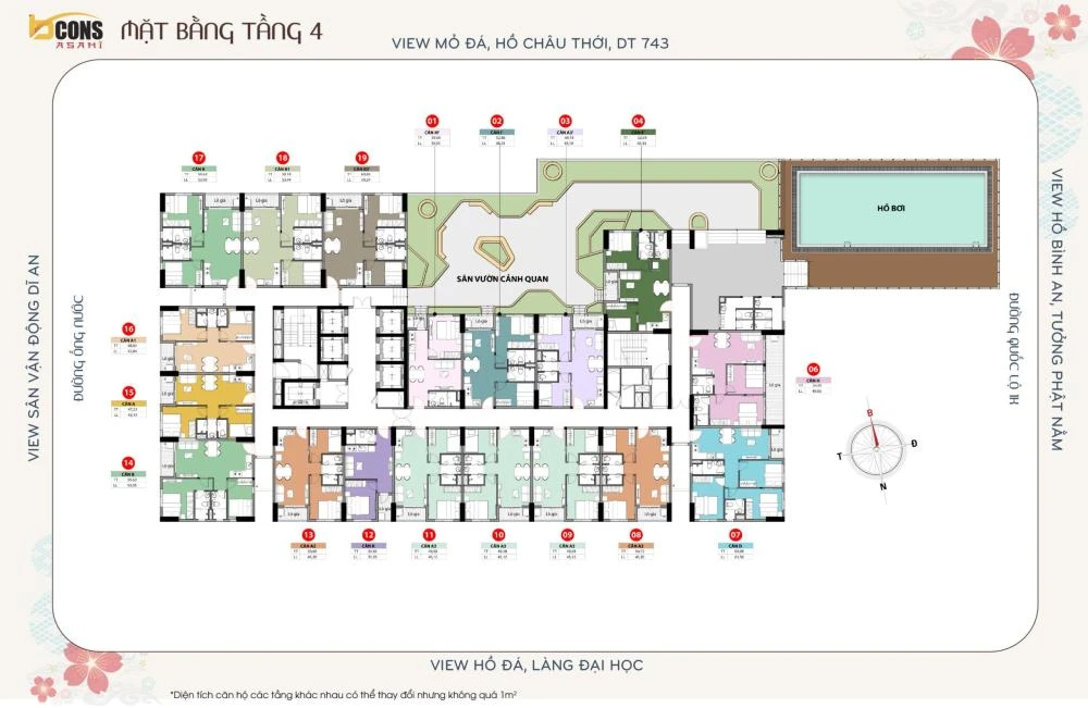 Bcons Asahi được quy hoạch với thiết kế mặt bằng tối ưu, chú trọng đến công năng sử dụng và trải nghiệm sống của cư dân: